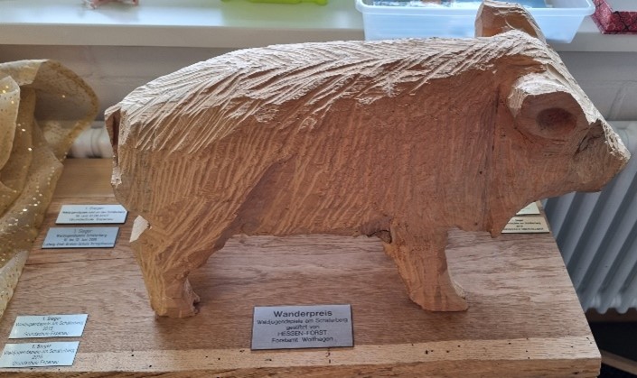 Nach ein paar letzten Instruktionen von Herrn Weishaar vom Hessenforst, dem Organisator der Waldjugendspiele, ging es auch schon los. Die Gruppen wanderten von Station zu Station. Dabei ging es teilweise steil bergauf oder mitten durchs Dickicht. Es gab Stationen zum Holzsägen, Holz stapeln und Müll sortieren. Ausgestopfte Waldbewohner und ihre Felle waren ebenso interessant wie Blätter und Baumarten. An der Station mit den Geweihen und verschiedenen Zapfen konnten die Kinder nicht nur ihr Wissen unter Beweis stellen, sondern auch wie Hirsche durch einen Waldparcours springen.