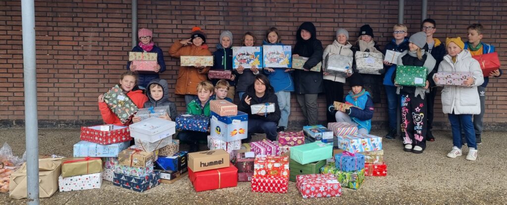 Es kamen viele Päckchen zusammen, welche in die Ukraine und andere entlegene ländliche Gegenden in Osteuropa gebracht werden. Dort freuen sich Kinder in Waisen- und Krankenhäusern, Behinderteneinrichtungen, Kindergärten und Schulen über die vielen liebevoll verpackten Sachen. Am 9.11.2023 wurden die Päckchen abgeholt und auf die Reise geschickt. Die Organisatoren waren sehr beeindruckt von der Vielzahl der gespendeten Sachen und nahmen sie dankbar entgegen. Auch die Schule bedankt sich für die große Spendenbereitschaft. Unter www.weihnachtspäckchenkonvoi.de kann der Weg der Päckchen nachverfolgt werden.