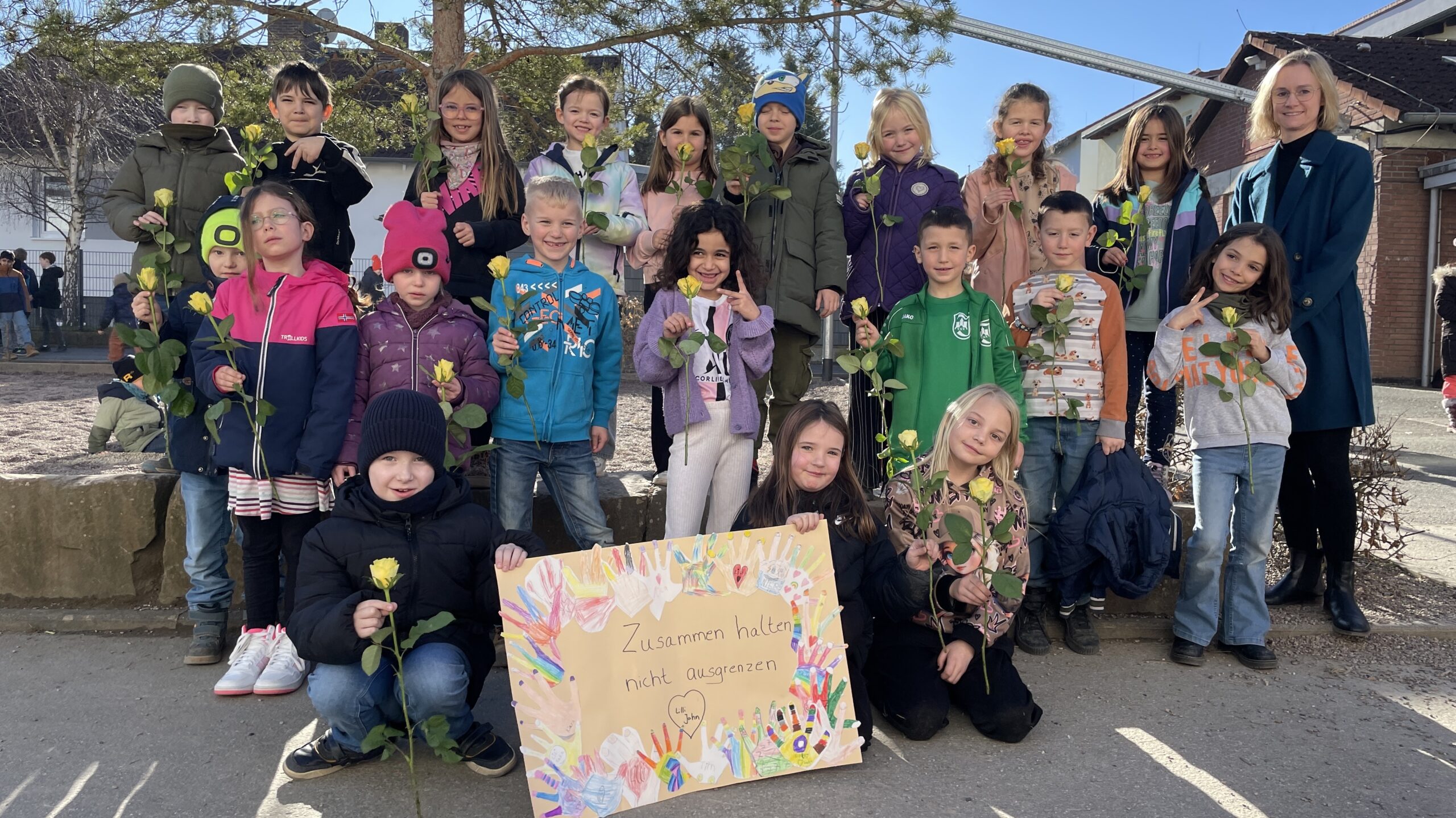 Zum Abschluss des Tages bekamen die Kinder der Lilli-Jahn-Schule noch eine gelbe Rose geschenkt, denn dies war die Lieblingsblume der 1944 deportierten und ermordeten Ärztin aus Immenhausen.