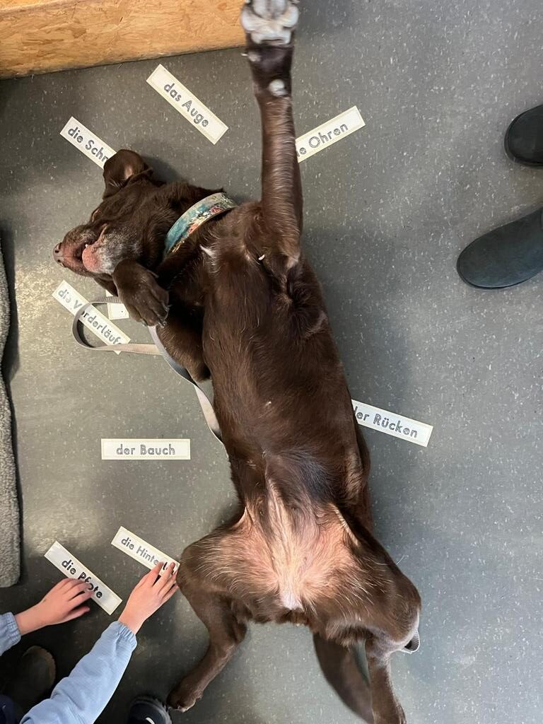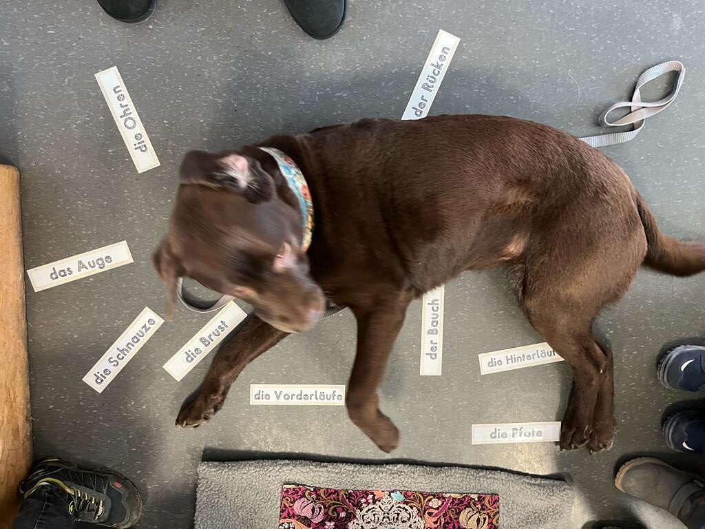Unser Schulhund Lotte ist immer mit dabei. Heute erklärt sie, wie man die Maske richtig trägt.
